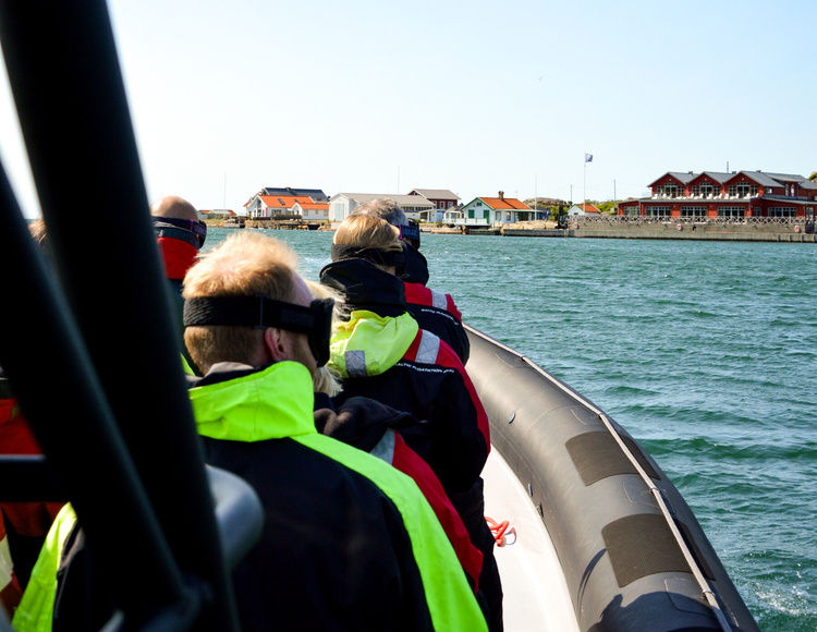 En minnesvärd kväll där västkusten visar sig från sin bästa sida. Deltagarna hämtas med ribbåt i Göteborgs hamn, upphämtningsplats efter avstämning t ex Klippan/Eriksberg/Långedrag och får uppleva en fartfylld färd genom skärgården. Önskas en längre tur i skärgården med ett stopp på någon öarna för något gott att dricka samt sälspaning så går det fint att lägga till.
