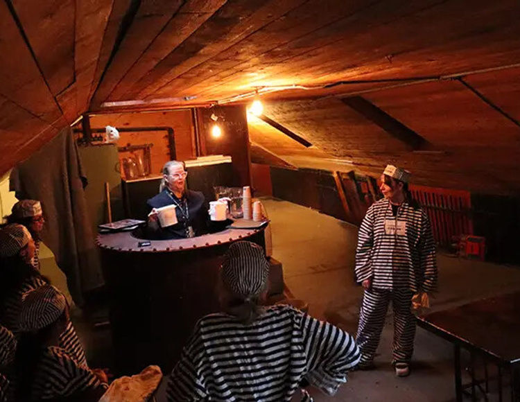 Nu får ni, tillsammans och lagvis göra fängslande utmaningar. Längs väggar och trapphus där fångar gått före er får ni möta en Fångvaktare som vill testa era kunskaper. Kanske ställs frågan, – När hände vad? Hur gjorde man då?